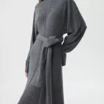 Elevate your winter wardrobe with the Elegant Grey Half-High Neck Knit Dress, a perfect blend of sophistication and comfort. Designed with a luxurious 33.8% wool composition, this dress offers the ultimate cozy feel while exuding effortless style. Its batwing sleeves and A-line silhouette add a touch of contemporary charm, making it a versatile choice for various occasions. Whether you’re lounging at home, heading to the office, or attending a casual outing, this ankle-length dress keeps you chic and comfortable throughout the season.