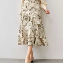 Use our battle tested marketing materials for Asymmetric Print Ruffle Skirt with Slit
