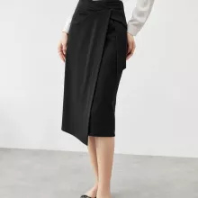 Use our battle tested marketing materials for Black Knit High-Waist Midi Skirt with Irregular Split for Women