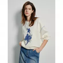 Use our battle tested marketing materials for Floral Applique Embroidery Long Sleeve Pullover Sweatshirt for Women