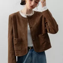 Use our battle tested marketing materials for Women's Brown Suede Jacket with Pockets