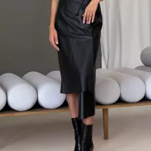 Use our battle tested marketing materials for Elegant Black PU Leather Bodycon Midi Skirt for Women - High Waist A-Line