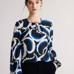 - Style: Chic blouse with a stylish camouflage print for a modern, artistic look.