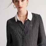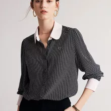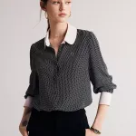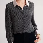 This blouse isn’t just a piece of clothing—it’s an experience. The Mulberry silk used in this design is known for its high quality and natural softness. The fabric is lightweight and breathable, making it a great option for both spring and summer but also comfortable enough to wear through autumn. Whether you’re heading to an important meeting, working at the office, or going out for a casual dinner, this blouse offers the perfect combination of elegance and comfort. With its chic polka dot pattern and thoughtful details like the turn-down collar and diamond accents, this blouse can be dressed up or down to suit any occasion. Pair it with tailored trousers for a polished office look or dress it down with jeans for a more relaxed yet still sophisticated appearance. The single-breasted closure ensures a flattering fit, and the full-length sleeves provide just the right amount of coverage.Perfect for Any Occasion
