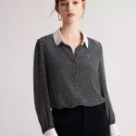 This blouse is versatile enough to transition from work to evening effortlessly. Its chic, timeless design makes it a wardrobe staple for any woman who values both style and function. Whether you need a go-to top for your office days or something elegant for dinner with friends, this blouse will ensure you look and feel your best. The breathable, natural silk fabric ensures comfort throughout the day, while the subtle, stylish accents keep you looking polished.Make a Statement in Style