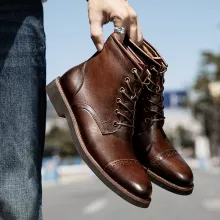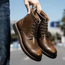 Use our battle tested marketing materials for Men’s Vintage Winter Ankle Boots - Genuine Cow Leather Motorcycle Brogue Shoes