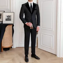 Use our battle tested marketing materials for Spliced Velvet Slim Fit Wedding Party Suit for Men