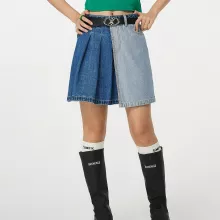 Use our battle tested marketing materials for Women's Denim Pleated A-Line Mini Skirt - 100% Cotton Color Clash Design