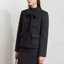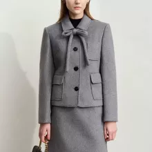Use our battle tested marketing materials for Woolen Commuter Coat with Bow and Lapel Collar
