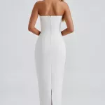 - Design: Strapless and off-shoulder style with sheer mesh sleeves for added allure.