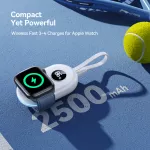 Power your Apple Watch on the go with this compact and portable 2500mAh wireless charger. Designed for all Apple Watch Series 9, 8, 7, 6, 5, 4, 3, 2, and 1, this versatile power bank ensures your watch stays charged and ready no matter where life takes you. With a sleek, lightweight design and a built-in USB-C cable, it's the ultimate travel companion for Apple Watch users.