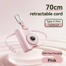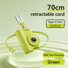 What sets this portable power bank apart is its combination of powerful performance and convenient design. With its retractable Type-C cable, fast-charging capabilities, and dual charging ports, it provides a versatile solution for powering your devices quickly and efficiently. The built-in digital display gives you real-time information on the power bank’s remaining charge, so you always know when it's time to recharge. Plus, the durable construction and hanging hook make it easy to carry with you, ensuring that you'll always be ready when you need power.