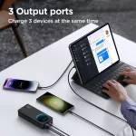 - Multi-Device Charging: Three output ports (Type-C and dual USB-A) let you charge up to three devices simultaneously, ensuring everyone stays connected.