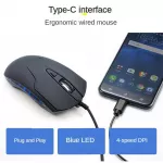 Type-C Wired Mouse 2400DPI Blue Backlight Gaming Mause Ergonomic Lightweight Mute Optical Office Mice For Laptop PC Mac Windows