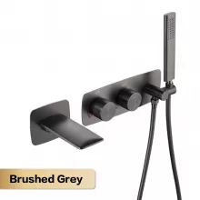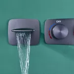 Transform your bathroom into a haven of elegance with this luxury gun gray brass faucet. Featuring a sleek wall-mounted design, dual handles for precise control, and a stunning waterfall outlet, this faucet combines contemporary aesthetics with exceptional performance. Its high-quality electroplated finish ensures durability and a refined look that complements any modern bathroom decor.