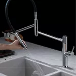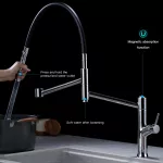 Upgrade your kitchen to the height of modern sophistication with this chrome magnetic suction brass kitchen faucet. Designed with both style and practicality in mind, it features a polished surface, single-handle control, and dual-function capabilities for hot and cold water. Perfect for enhancing the functionality and aesthetics of any kitchen, this faucet is the ultimate blend of elegance and convenience.