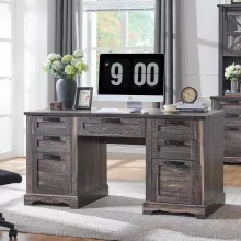 Use our battle tested marketing materials for 60" Farmhouse Executive Desk with Drawers, Wood Office Desk with Charging Station