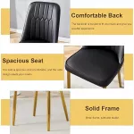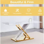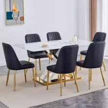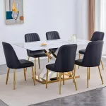 - Comfortable Chairs: The set includes 6 dining chairs made of high-quality PU leather, filled with a high-density sponge for optimal comfort. The gold metal legs add a stylish contrast, while the ergonomic backrest ensures that you can sit comfortably for hours without strain.
