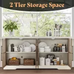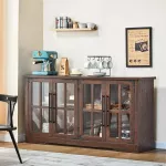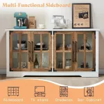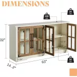 Keep your space organized and clutter-free with this spacious sideboard cabinet. With four tempered glass doors and two adjustable shelves, you can store a variety of items, from dishware and linens to books and décor pieces. The 63" wide waterproof top provides a sturdy surface for displaying small appliances, decorative accents, or family photos.
