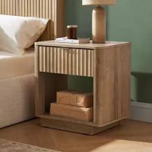 Use our battle tested marketing materials for Modern Farmhouse Bedside Table with Drawer and Open Shelf