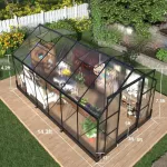 Engineered with a rust-resistant aluminum frame and 6mm polycarbonate panels, this greenhouse is built for durability and performance. It withstands harsh weather conditions, including winds up to 60 mph and snow loads of 18 psf, providing a secure space for your plants in every season. The UV-resistant panels protect plants from harmful rays while ensuring optimal sunlight exposure for healthy growth.
