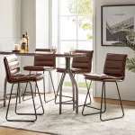 These counter stools stand out for their blend of style, comfort, and functionality. The hand-stitched details on the backrest and cushion showcase fine craftsmanship, while the brown faux leather finish adds warmth to your interior decor. With their compact size, these stools are perfect for kitchen counters, bar tables, or small dining spaces.