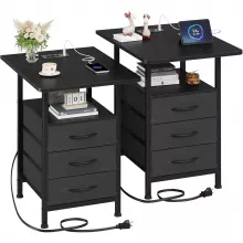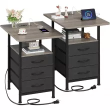 Use our battle tested marketing materials for 19'' Large Bedside Table Set of 2 with Charging Station and 3 Fabric Drawers