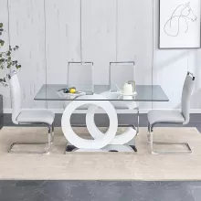Use our battle tested marketing materials for Modern Glass Dining Table Set with 4 PU Leather Ergonomic Chairs, 63 Inch