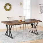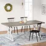 - Farmhouse-Inspired Design: A perfect blend of rustic charm and modern elegance, featuring a vintage brown tabletop and a white trestle base with x-shaped side accents.