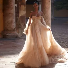 Use our battle tested marketing materials for Champagne A-Line Tulle Wedding Dress with Sweetheart Strapless Design