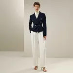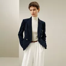 Step into sophistication with this beautifully tailored wool blazer for women. Crafted from worsted wool twill fabric on the outside and featuring a luxurious 16MM Jacquard satin lining, this blazer offers the perfect balance of style and comfort. The lapel collar and double-breasted design create a timeless look that suits any formal occasion. Whether at work or attending business events, this blazer ensures you exude confidence and poise.Key Features