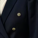 - Elegant Details: Antique brass buttons featuring the brand logo add a touch of nobility to the design.