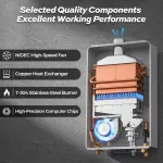 - Easy Installation: Designed for quick and hassle-free indoor installation with standard 3/4" NPT water inlet fittings and air inlet, this water heater is easy to set up in your home.