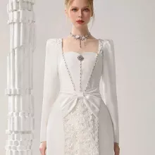 Use our battle tested marketing materials for Romantic White Mini Dress with Bow and Square Neckline for Autumn Elegance