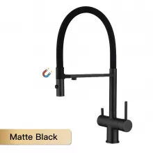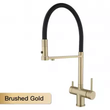 Use our battle tested marketing materials for Brushed Gold Brass Double Handle Kitchen Faucet with Retractable Spout