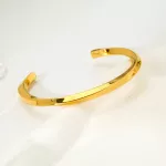 Step up your jewelry game with the exquisite 18K Gold Plated Twisted Cuff Bracelet. Crafted from durable stainless steel and plated with luxurious 18K gold, this open bangle features a unique twisted geometric texture that adds a modern and stylish touch to your look. Designed for women who love statement pieces with a hint of minimalism, this cuff bracelet is waterproof, hypoallergenic, and perfect for both everyday wear and special occasions. Whether you're accessorizing for a party or enhancing your casual outfit, this bracelet is a must-have in your collection.