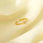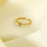 This dainty adjustable ring stands out with its sleek, modern design and sparkling cubic zirconia centerpiece. The open style allows for effortless adjustment, ensuring a comfortable fit for every wearer. Its stainless steel construction and PVD 16K gold plating ensure durability and lasting shine, making it a practical yet luxurious addition to any jewelry collection. The hypoallergenic and waterproof features mean you can wear it confidently, even during everyday activities like washing hands or swimming.