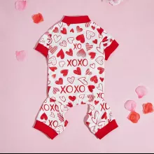 Wrap your furry friend in love with these adorable Sweet Hearts Dog Pajamas! Perfect for small dogs, these soft and comfy onesies feature a cute heart pattern and an XOXO design that will make your pet the star of the show. Whether your dog is cuddling up for a nap or looking to stay warm on a chilly night, these pajamas are the ultimate way to keep them cozy and stylish. The stretchy fabric ensures a perfect fit, making it ideal for dogs of all shapes and sizes.Key Features