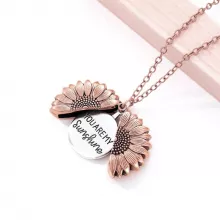 Show your love and appreciation with the beautiful "You Are My Sunshine" Sunflower Necklace. This trendy and elegant piece is perfect for women and men alike, featuring a radiant sunflower pendant plated in stunning gold color. Whether it's for your girlfriend, mom, or a special someone, this necklace makes a meaningful gift for birthdays, anniversaries, or any occasion where you want to bring a smile to their face. Its thoughtful design and heartfelt message make it a cherished keepsake that symbolizes warmth, love, and positivity.