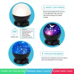 The Star Projector Lamp is packed with thoughtful features to enhance your child’s experience. It projects vibrant stars and moon patterns in a variety of colors, allowing your little one to enjoy a customized celestial display. With an easy-to-use control panel, you can adjust the rotation, light color, and nightlight mode. Powered by either USB or AAA batteries, this lamp is versatile and portable, making it ideal for any room or on-the-go use.