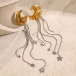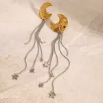 Crafted from stainless steel and coated with 18K PVD gold plating, these earrings are built to last. The anti-scratch and waterproof design ensures their brilliance stays intact for years to come. Hypoallergenic and free from harmful chemicals, they are safe and comfortable for all-day wear. Weighing just 12.7g, they offer lightweight elegance without compromising on style. The celestial charms are intricately designed to reflect the beauty of the night sky, making them a standout addition to your accessories.