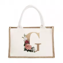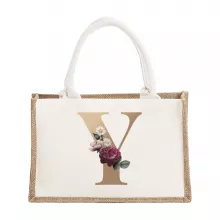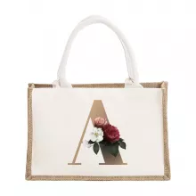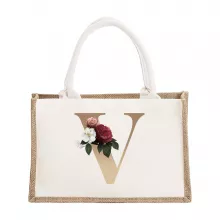 Use our battle tested marketing materials for Personalized Gold Print Jute Canvas Tote Bags for Bridesmaids and Beach Trips