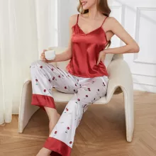 Use our battle tested marketing materials for Silk Satin Pajama Set for Women – Sleeveless V-Neck Top & Cherry Print Pants