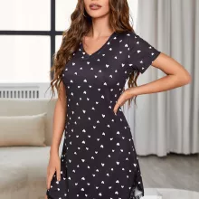 Use our battle tested marketing materials for Heart Print Lace Hem V-Neck Nightgown for Women