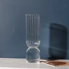 The combination of sleek design and premium craftsmanship makes this glass vase stand out. Its vertical stripe pattern provides a sophisticated texture that catches the light, creating a visually stunning effect. Lightweight yet sturdy, this vase is easy to handle and arrange, offering endless possibilities for your floral and decorative displays.