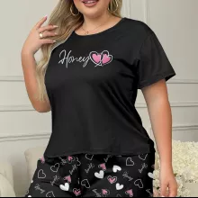 Use our battle tested marketing materials for Plus Size Heart Print Women's Pajamas Short Sleeve O-Neck Top & Shorts Sleepwear