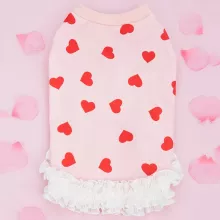 Use our battle tested marketing materials for Pink Chiffon Dog Dress with Hearts Pattern and Floral Trim