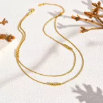 The 2-Layer Beaded Chain Necklace stands out for its minimalist elegance and practicality. Its double-layer design adds dimension and interest to your look, while the hypoallergenic stainless steel material ensures comfort and durability. The waterproof finish means you can wear it all day without worrying about damage, making it perfect for both special occasions and everyday wear.