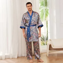 Upgrade your loungewear collection with our luxurious Men's Satin 2-Piece Pajama Set. Designed for those who value comfort and elegance, this set includes a long-sleeve kimono-style bathrobe and matching trousers. Perfect for unwinding at home, it blends functionality with sophistication, making it ideal for relaxing evenings, casual mornings, or cozy weekends.What Makes This Set Special?