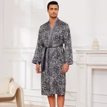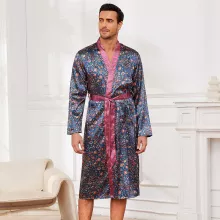 Use our battle tested marketing materials for Men's Satin Kimono Robe with Belt - Navy Blue Print Loungewear